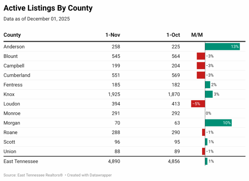 East Tennessee home sales rose 2.6% from November 2024.